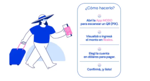 Ahora es posible pagar consumos con PIX -el sistema de códigos QR instantáneos de Brasil- en forma directa desde la APP MODO, utilizando los dólares de la cuenta de Banco Macro.